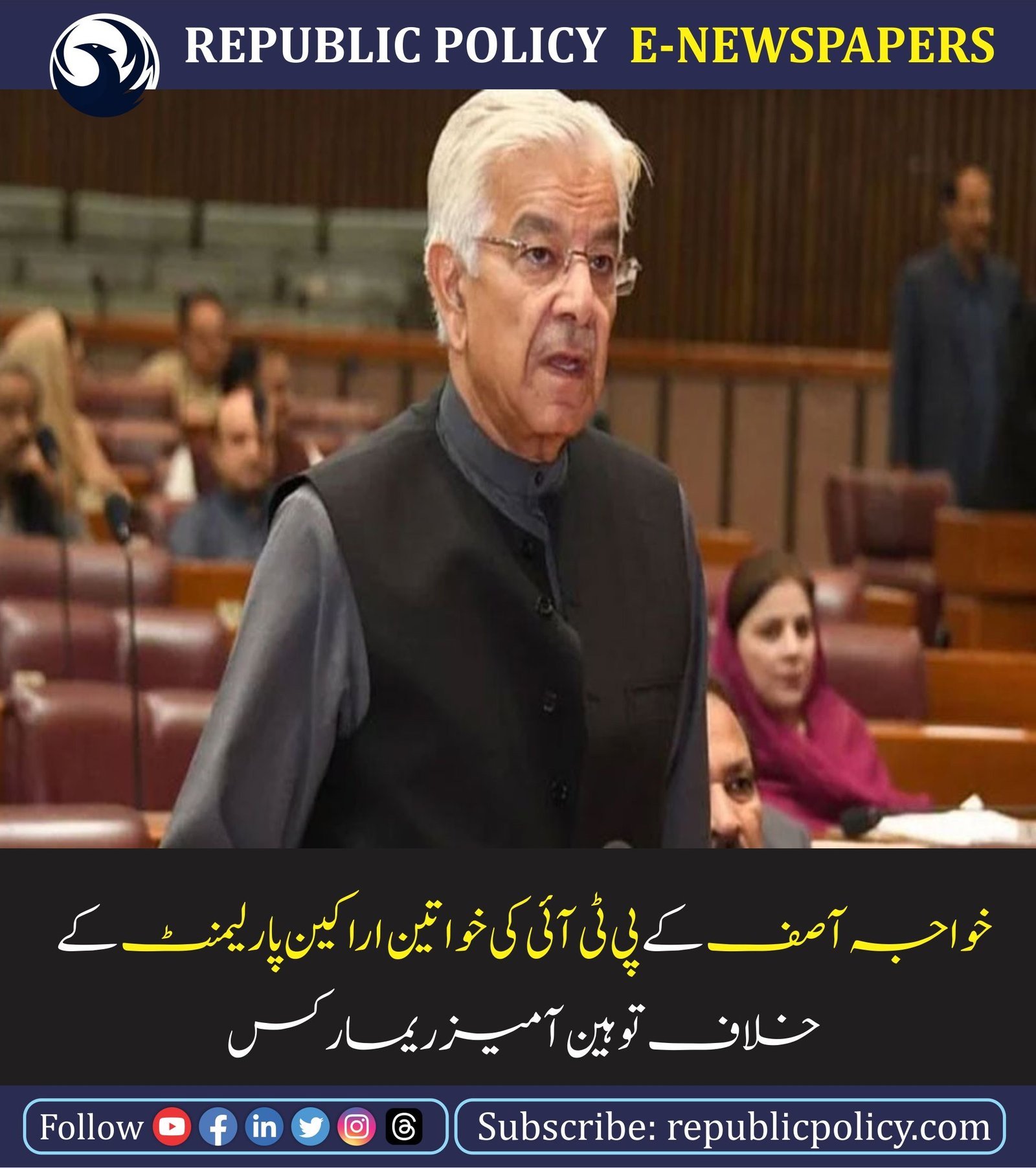 خواجہ آصف کے پی ٹی آئی کی خواتین اراکین پارلیمنٹ کے خلاف توہین آمیز ریمارکس