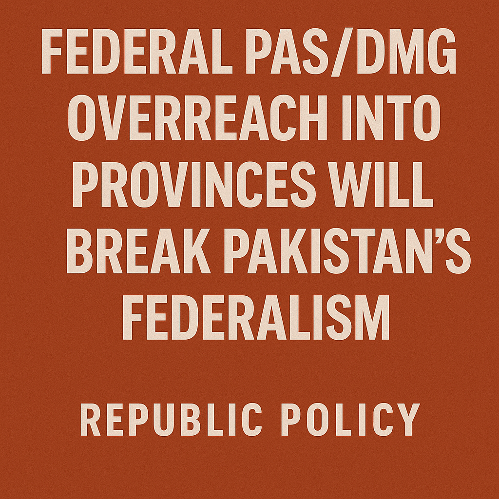 Federal PAS/DMG Overreach into Provinces Will Break Pakistan’s Federalism