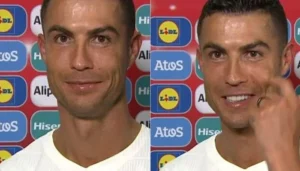 Cristiano Ronaldo, the charismatic Portuguese football icon, shared a light-hearted moment with a cameraman following Portugal’s triumphant 1-0 conquest over Ireland. As the match concluded, Ronaldo, the goal-scoring hero, playfully cautioned the cameraman, “Keep your distance, mate. Too many lines to count.” This witty remark elicited smiles from all present, injecting a delightful touch of … Continue reading Portugal’s Goal Machine Ronaldo Strikes Again, Creates Comic Relief